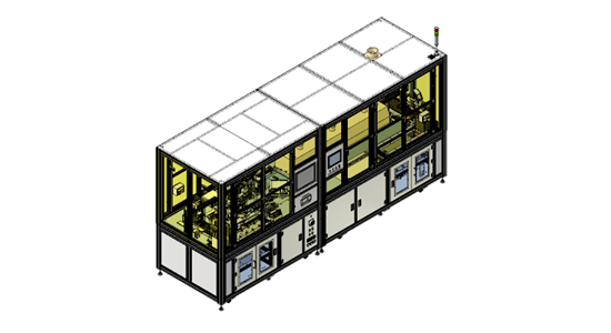 It is a facility that automatically inputs sensors applied to automobiles from the magazine, quantitatively discharges two-liquid GEL to the assembled PCB of the product, checks the discharged part, hardens it with hot air, and automatically loads it back into the magazine.